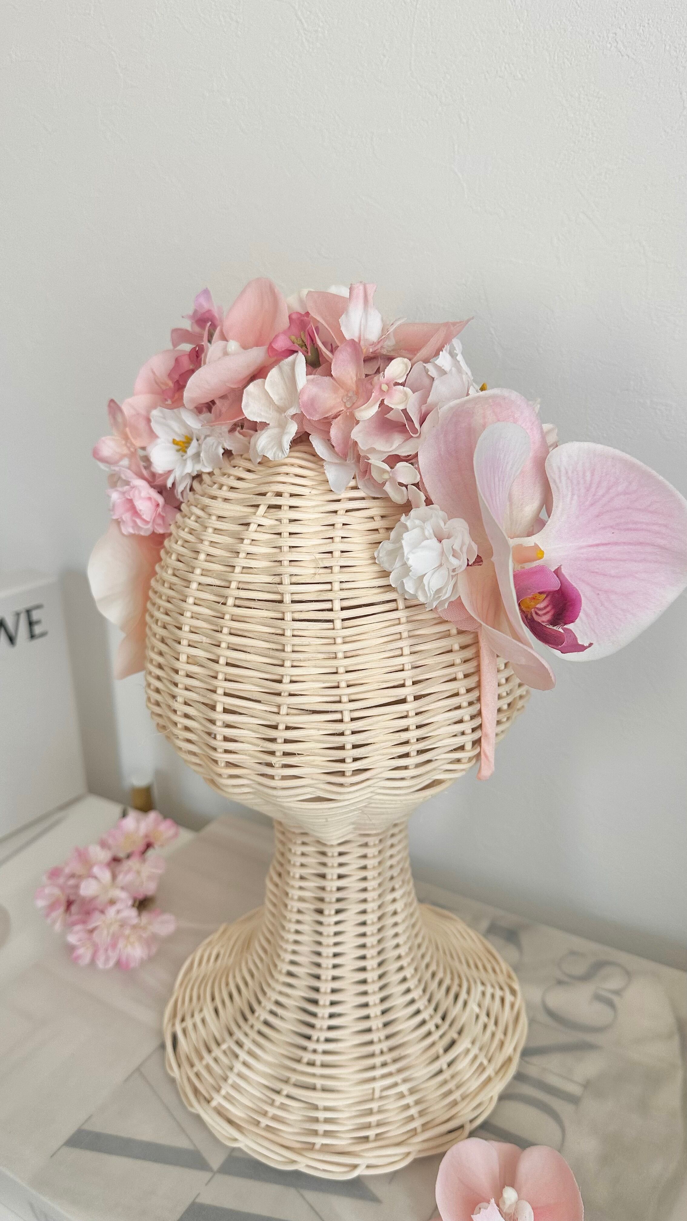 \ ピンクの胡蝶蘭とあじさいでお子様の可愛さがより引き立つ /