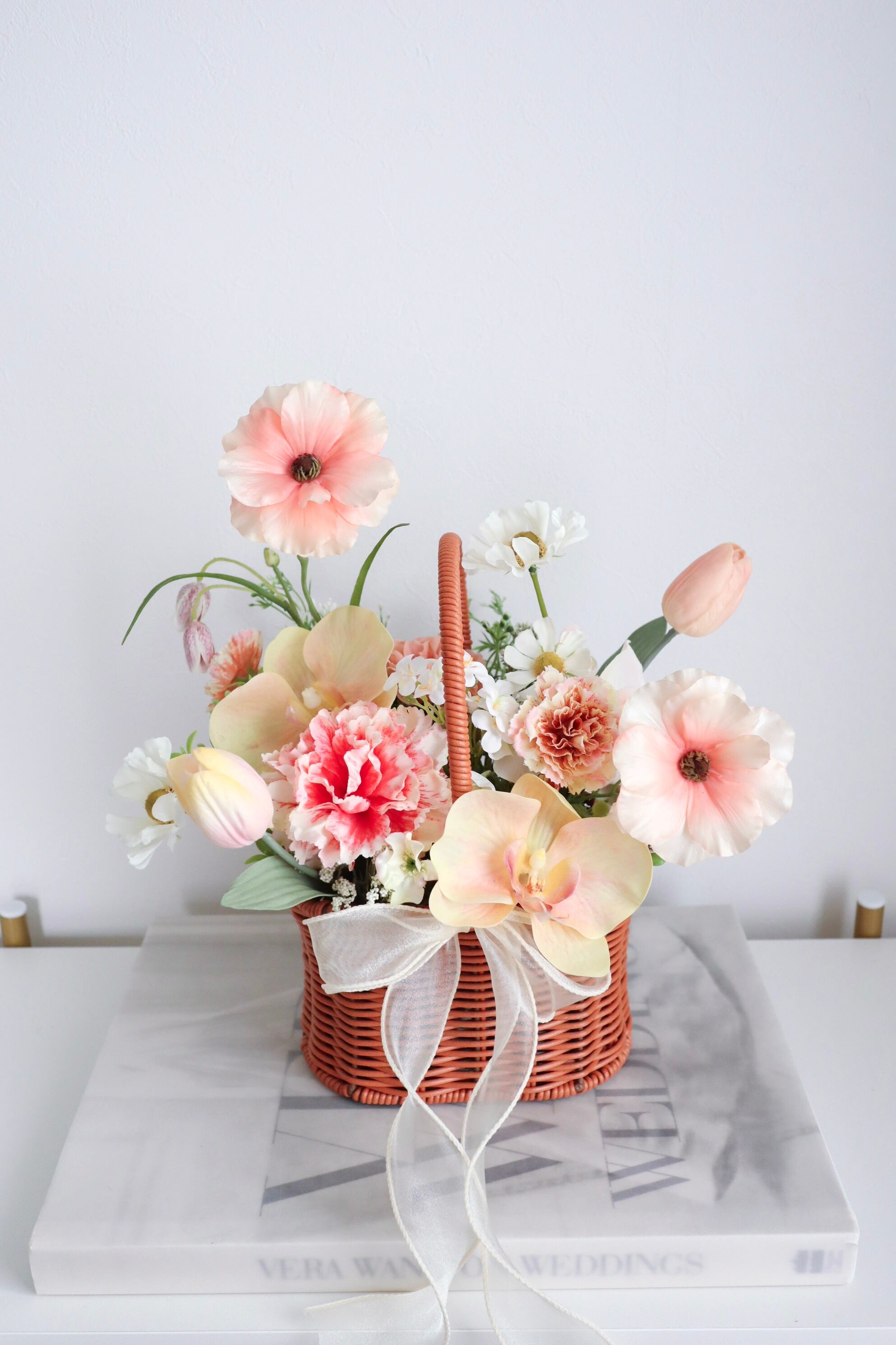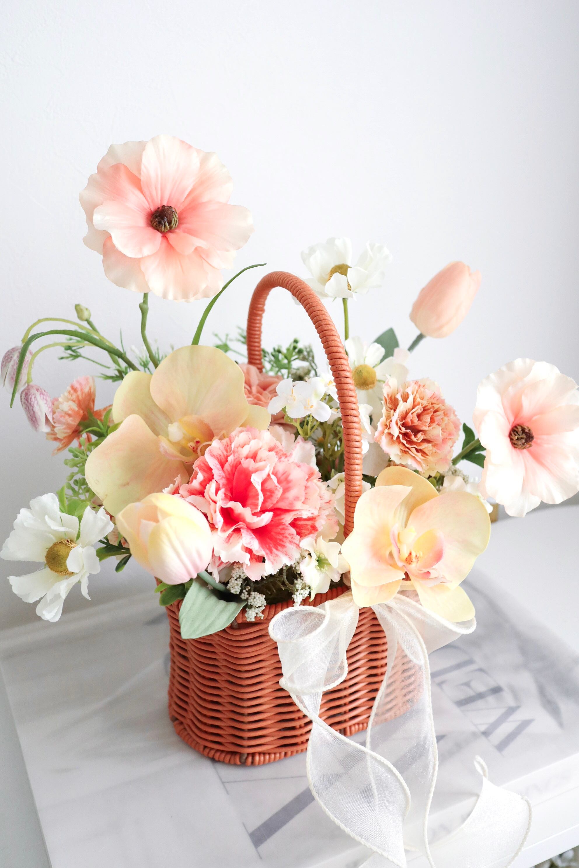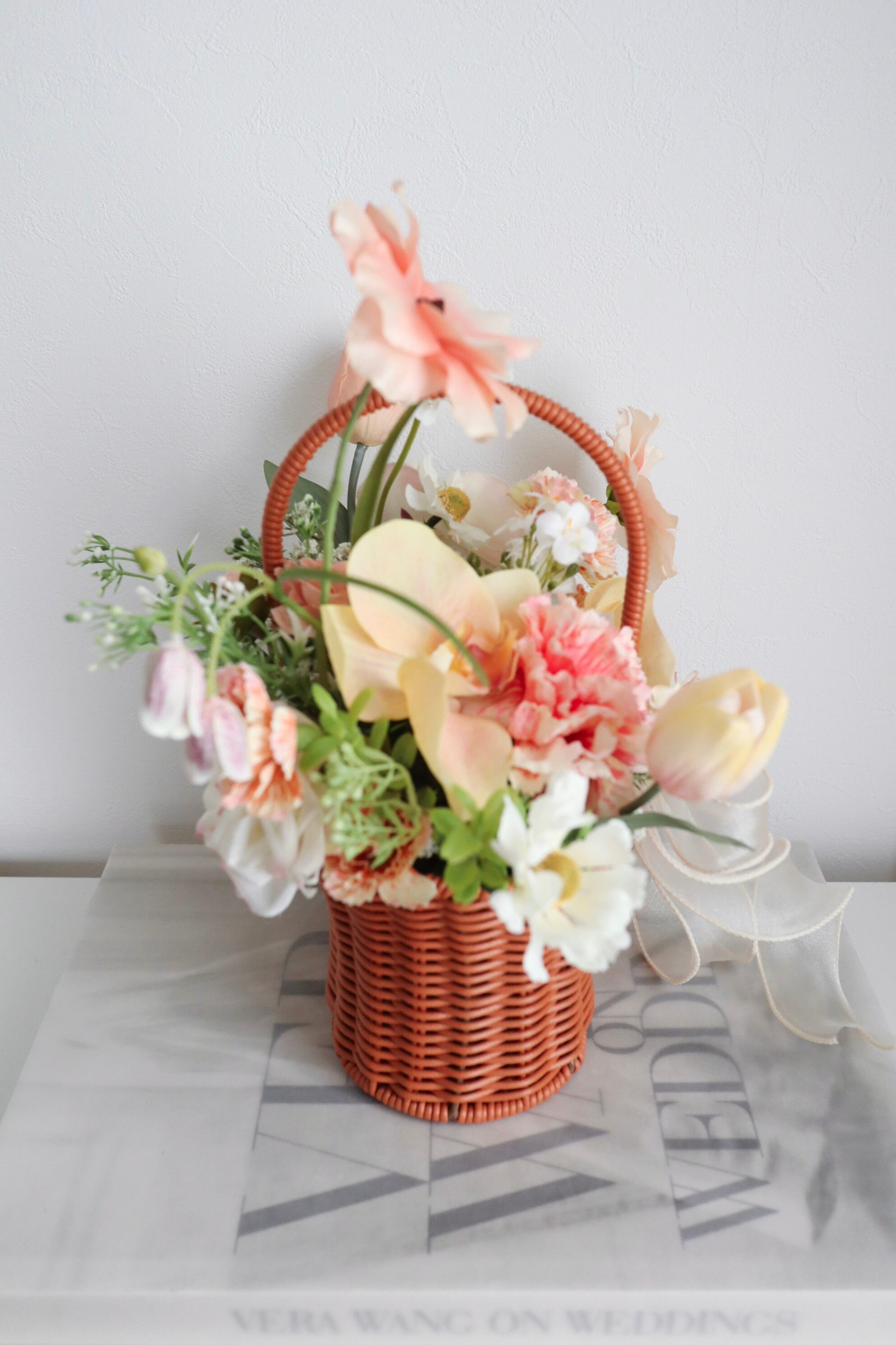 バスケットにはオーガンジーのリボンをお付けしているため、贈り物にもぴったりです。