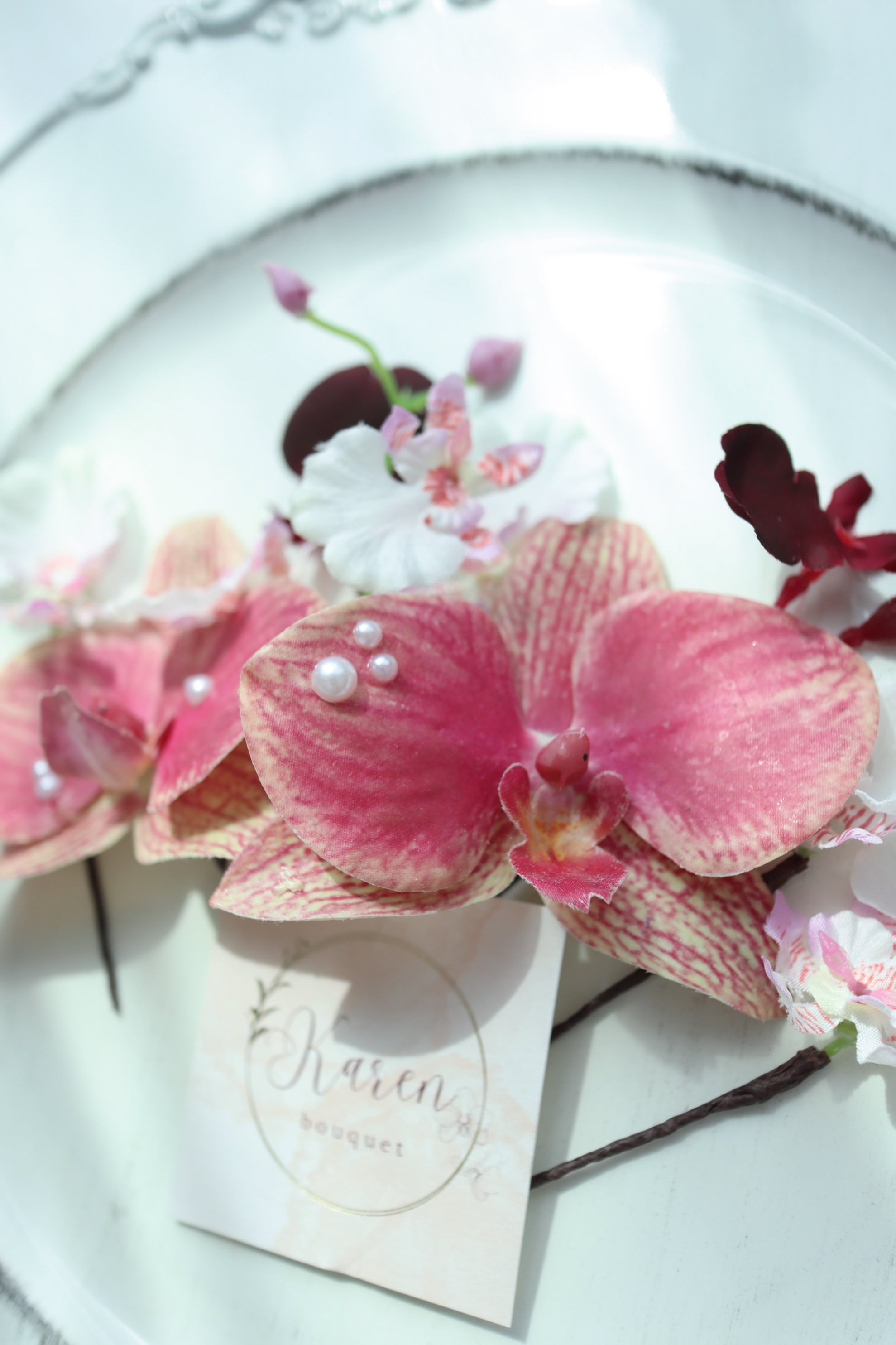 パール付きピンク胡蝶蘭のヘッドパーツ