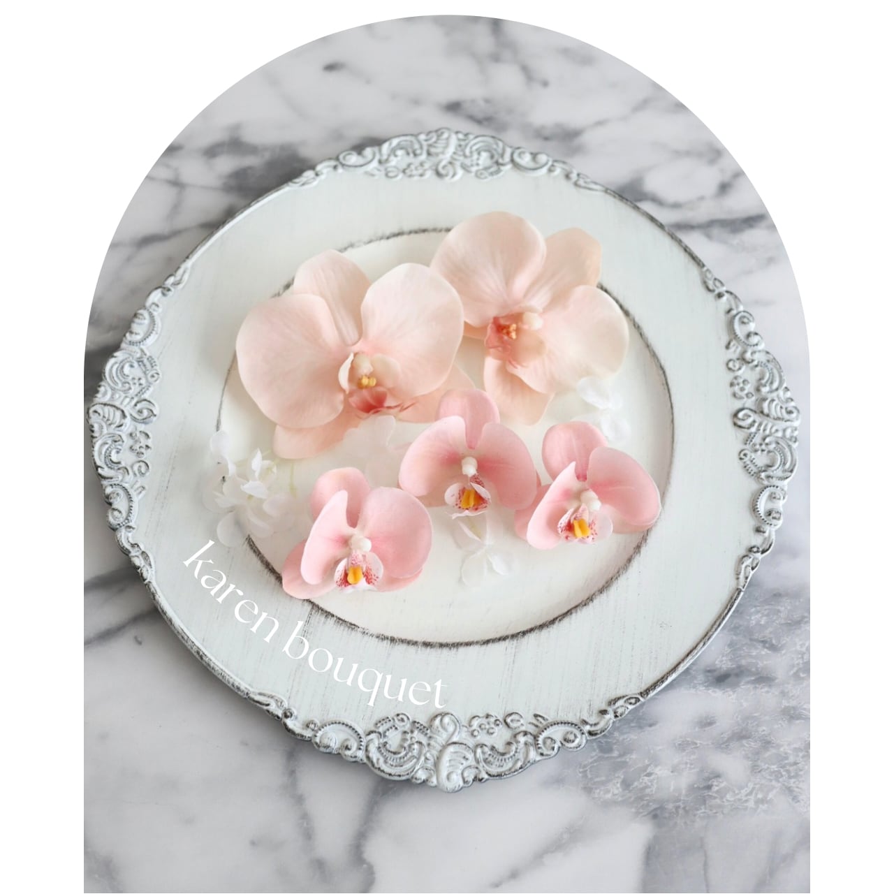 胡蝶蘭2種類と小花がセットになったニュアンスカラーのヘッドパーツのセットです。