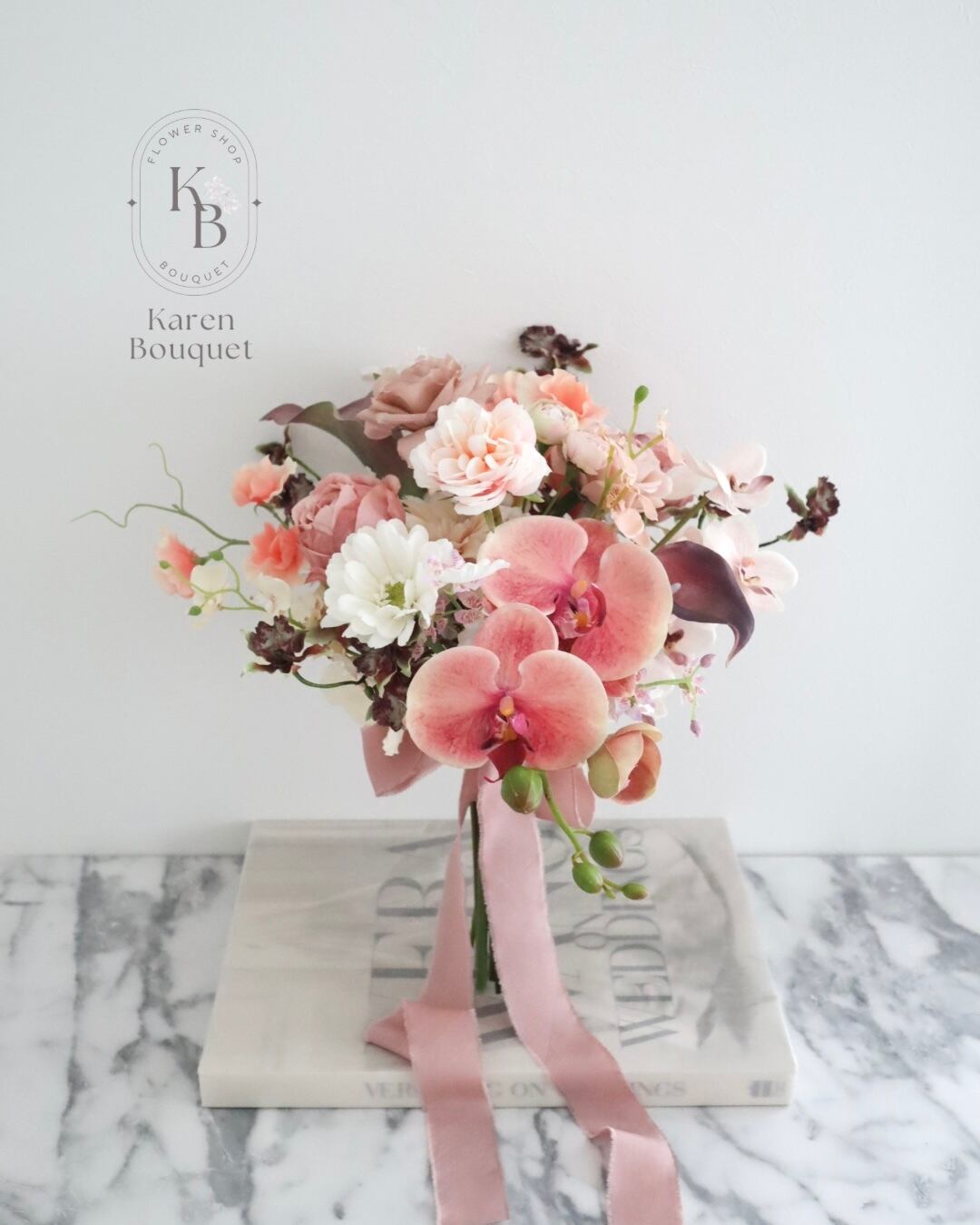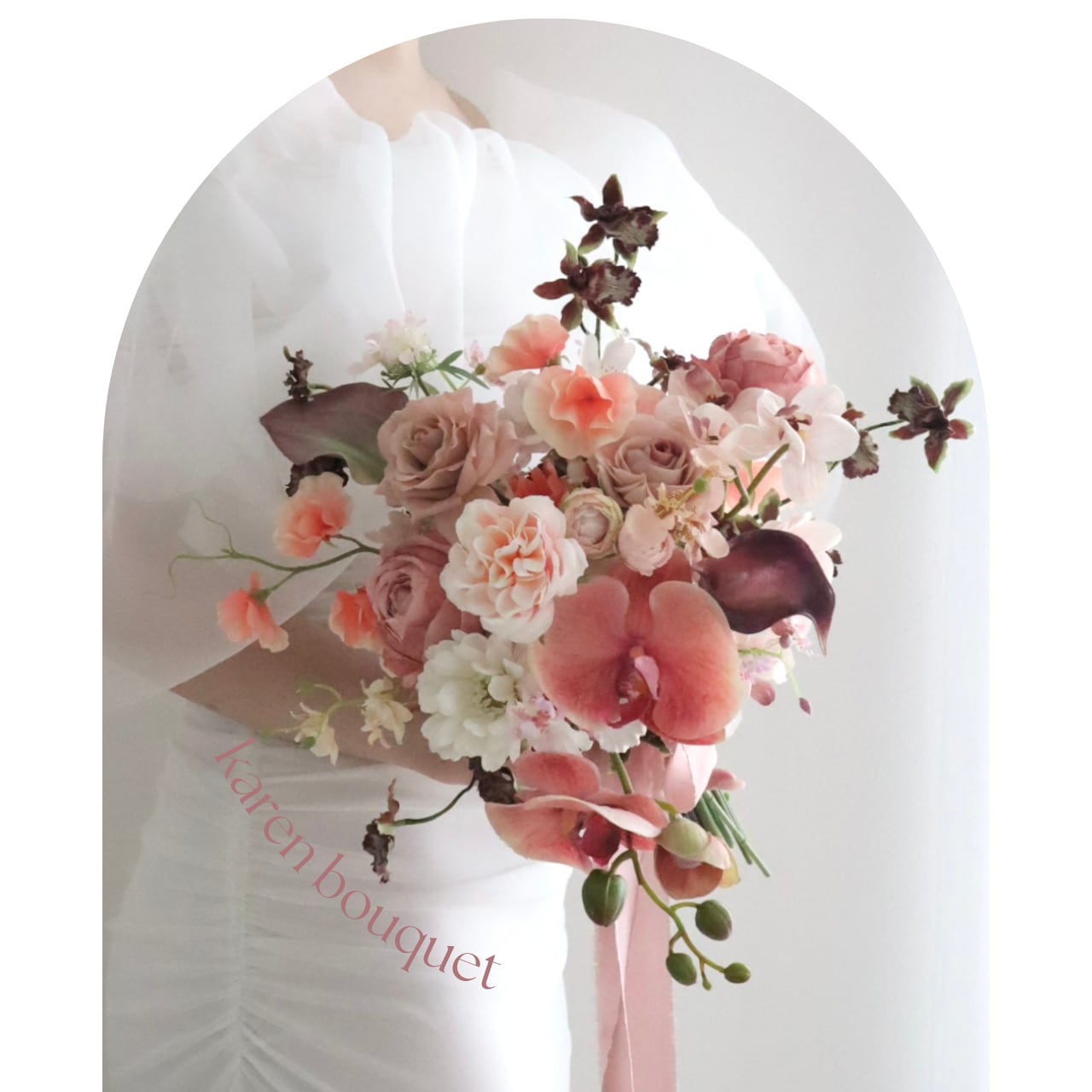 ・生花にはないピーチ胡蝶蘭のブーケで、ワンランク上のウェディングを叶えてくれます