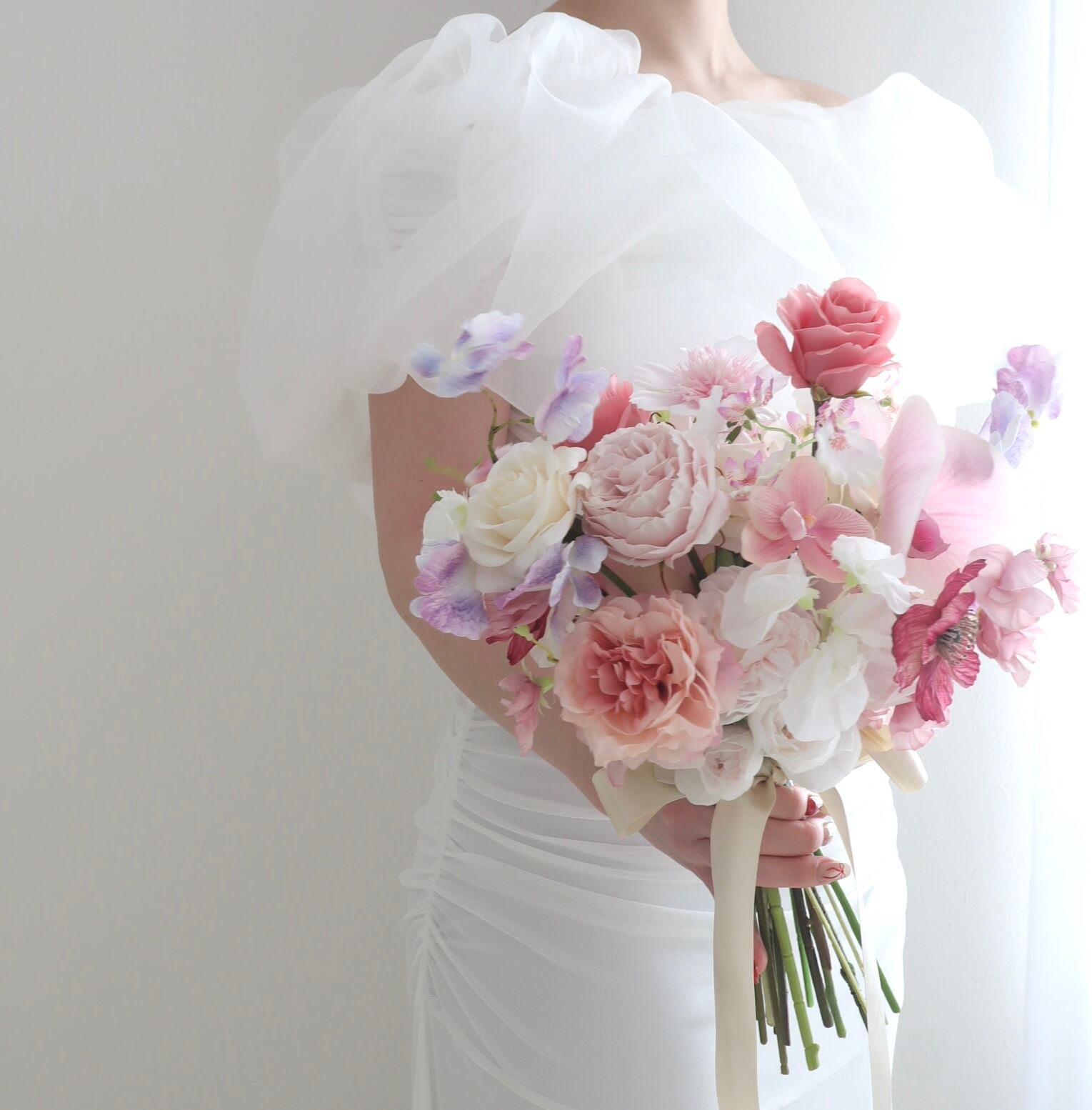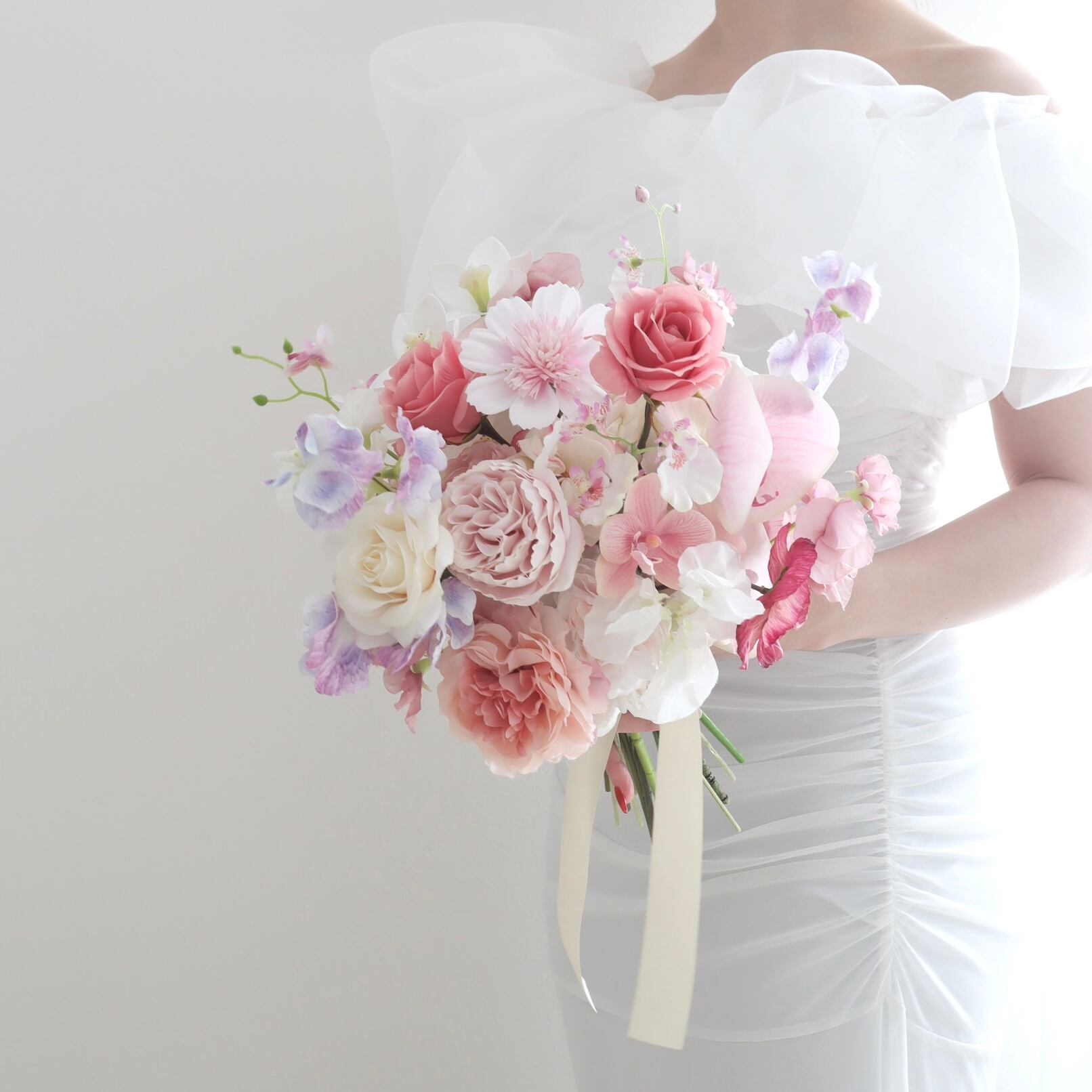 ウェディングブーケ ブーケ 造花 アーティフィシャルフラワー 前撮り 後撮り フラワーギフト ウェディングアイテム ラウンドブーケ 造花ブーケ エレガントブーケ 芍薬 ピオニー 胡蝶蘭 結婚式ブーケ パステルカラーブーケ ピンクブーケ ふわふわブーケ トレンドブーケ ぴょんぴょんブーケ 持ち込みブーケ 海外ブーケ 持ち込みブーケ ブライダルブーケ ナチュラルブーケ コーラルピンク くすみカラー ガーデンウェディング 海外ウェディング ロケーションフォト 挙式 披露宴 ブライダルブーケ